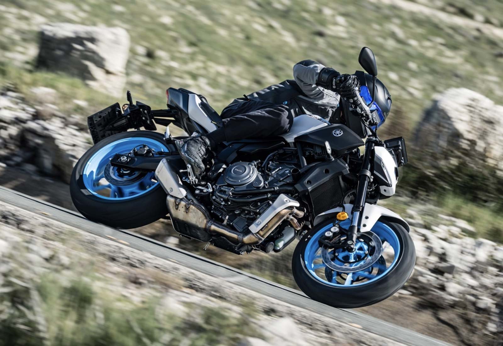 Mit der kostenlosen MyRide-App lässt sich das Smartphone koppeln und aufs 5-Zoll-Farbdisplay spiegeln. Per Navi-App Garmin StreetCross können sich MT-07-Fahrer kostenlos durch Europa führen lassen. Ein etwas längerer Druck auf die Hometaste links am Lenker genügt, dann wechselt der Bildschirm vom Instrumenten- in den Navigationsmodus und weist großflächig den Weg. Der Weg ins Bedienmenü führt über den neu gestalteten 5-Wege-Joystick. Die Blinker werden über einen neuen Gnubbelkippschalter aktiviert und gehen selbsttätig wieder aus.